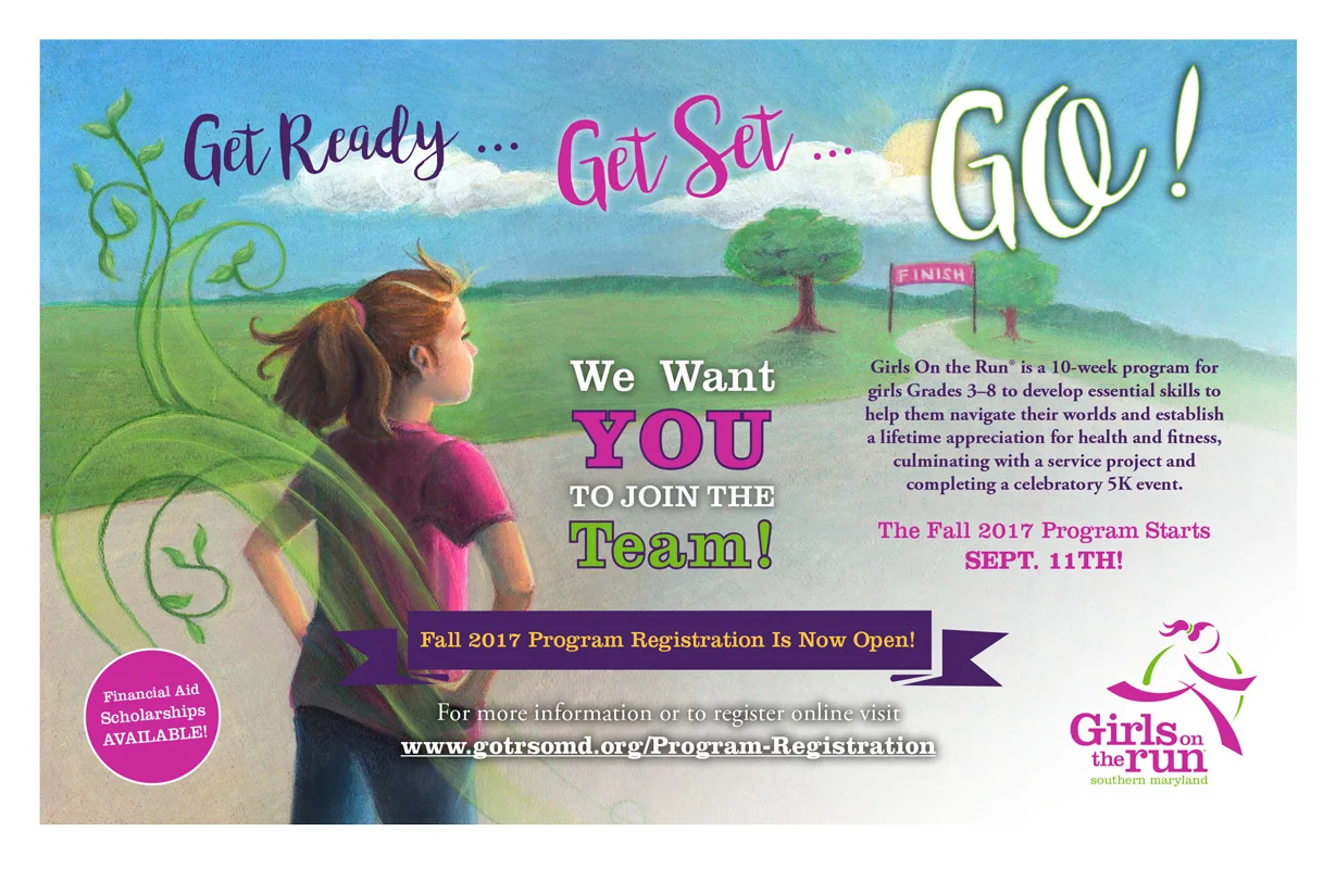 Illustration and marketing/social media designs for Girls on the Run Southern Maryland created during a summer internship with the group in 2017.